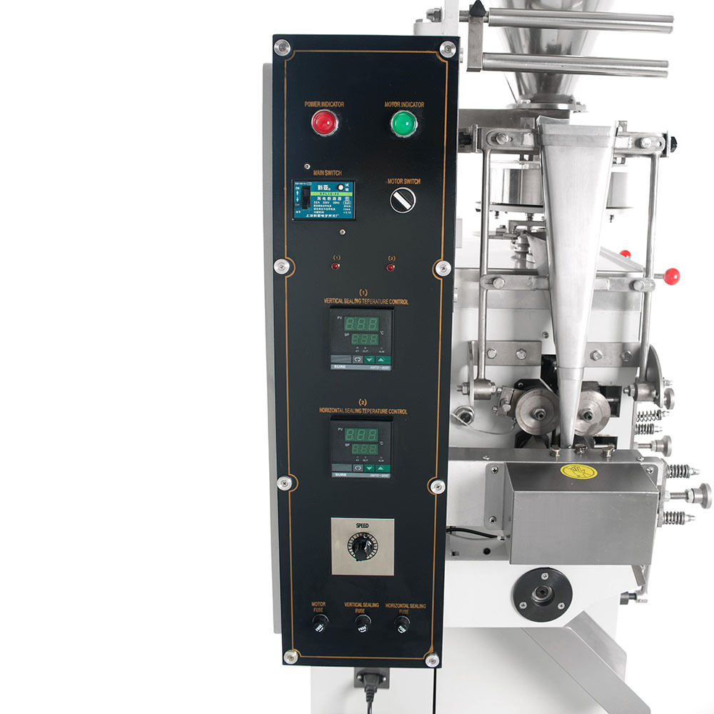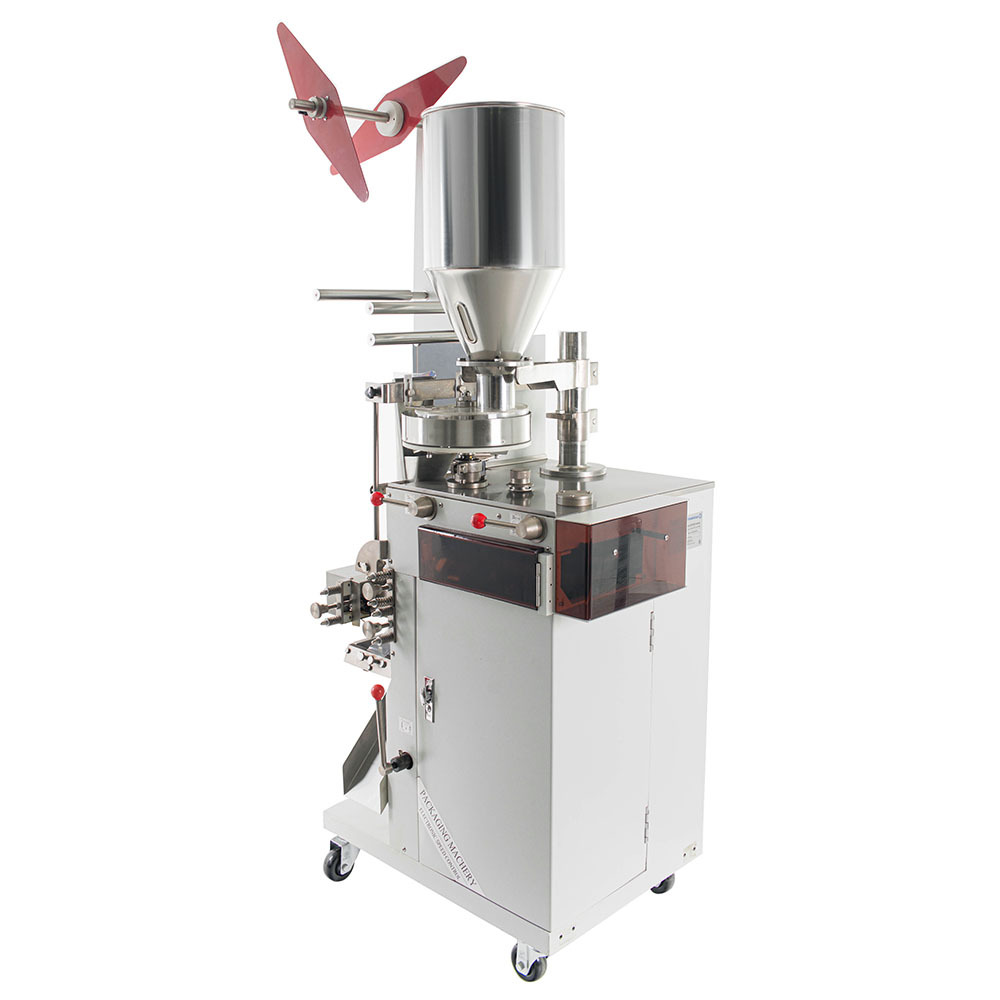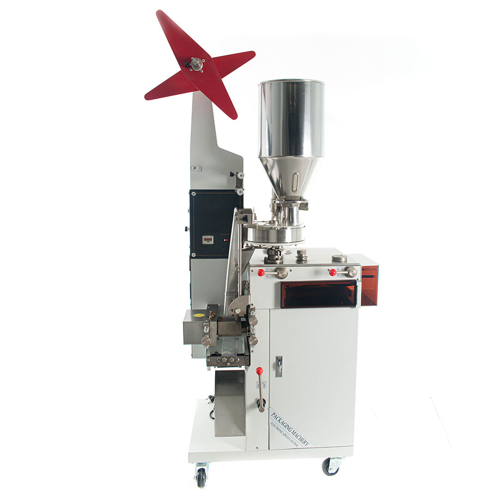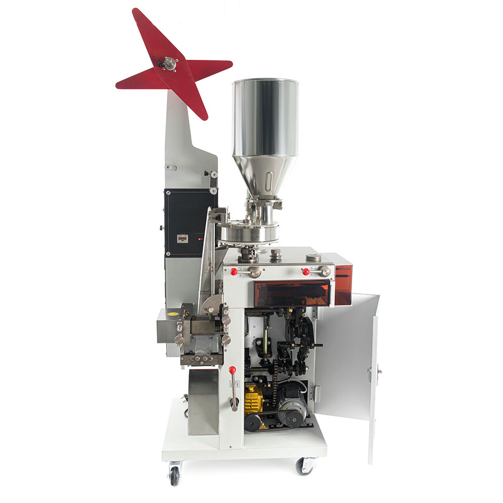 Для фасовки и упаковывания продукта, размером с земляной орех, можно использовать фильтрующую бумагу или ламинированную пленку. Мощность потребления 1,8 Вт, двигателя 550 Вт, есть кнопка экстренной остановки. Аппарат чайный — идеальное оборудование по соотношению цена/качество.