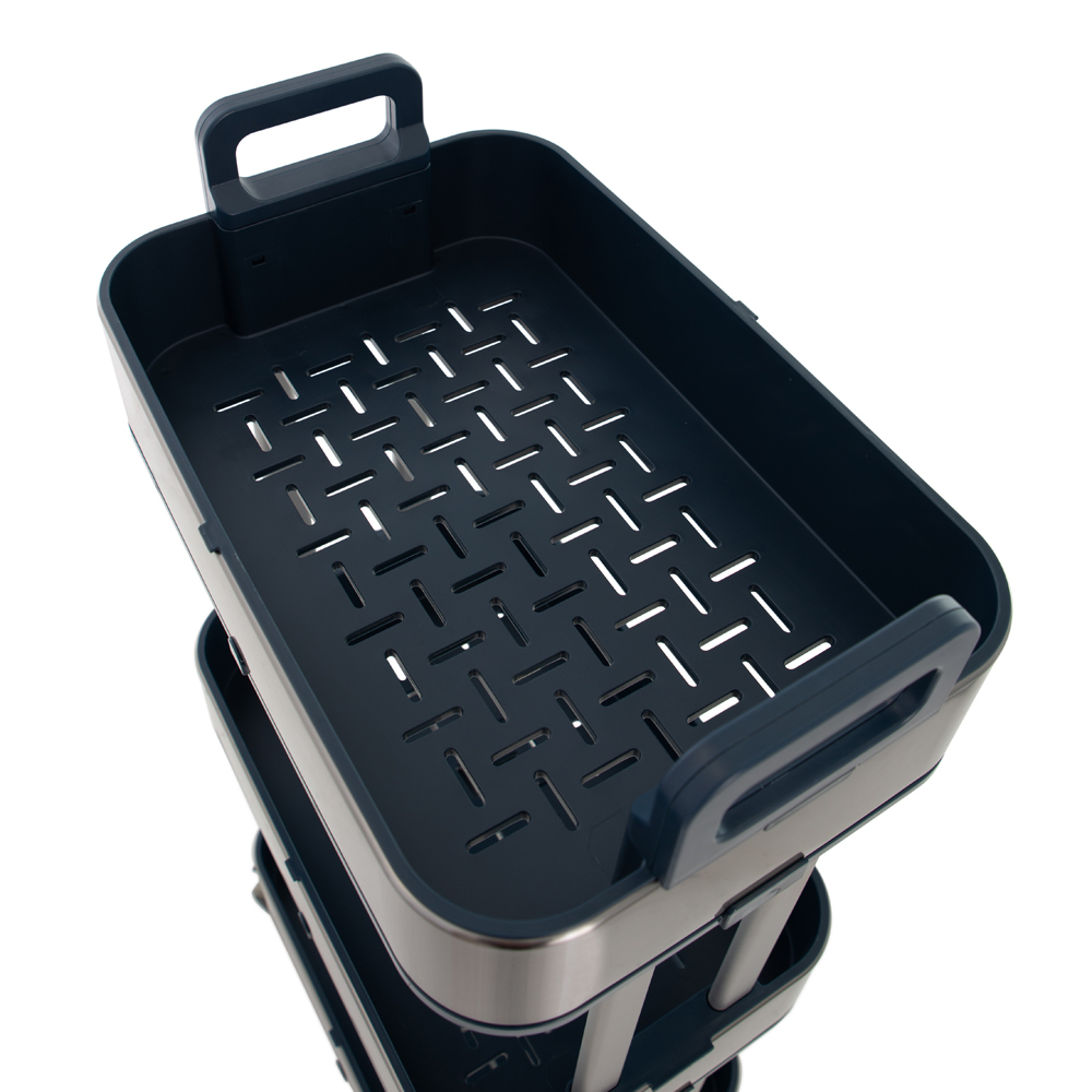 Этажерка, 3 яруса Foodatlas JAH-019 с лаконичным дизайном может использоваться как в кухне, так и в помещениях, где находятся гости. Металлическая поверхность сохраняет привлекательный внешний вид при соблюдении простых требований безопасности. Покрытие не покрывается пятнами и не трескается.