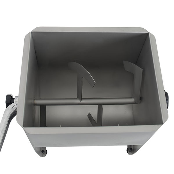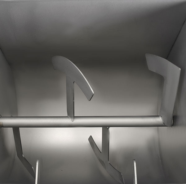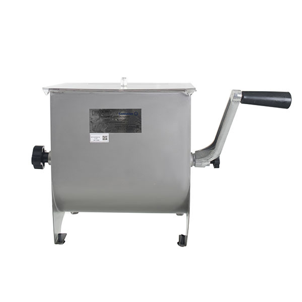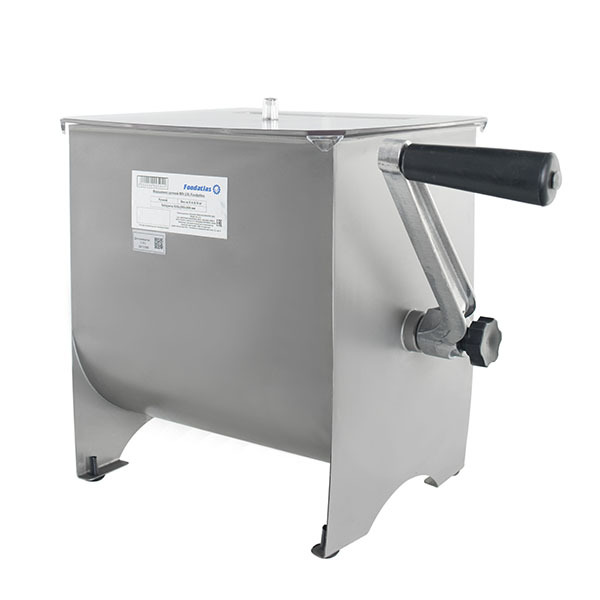 Процесс перемешивания осуществляется ручным способом при помощи оператора, путем вращения ручки фаршемеса. У оборудования лопастной тип месильного органа, что позволяет ему смешивать продукт с помощью 4-ёх достаточно больших лопастей, установленных на валу. Длительность перемешивания определяется типом фарша, продукта и технического процесса.