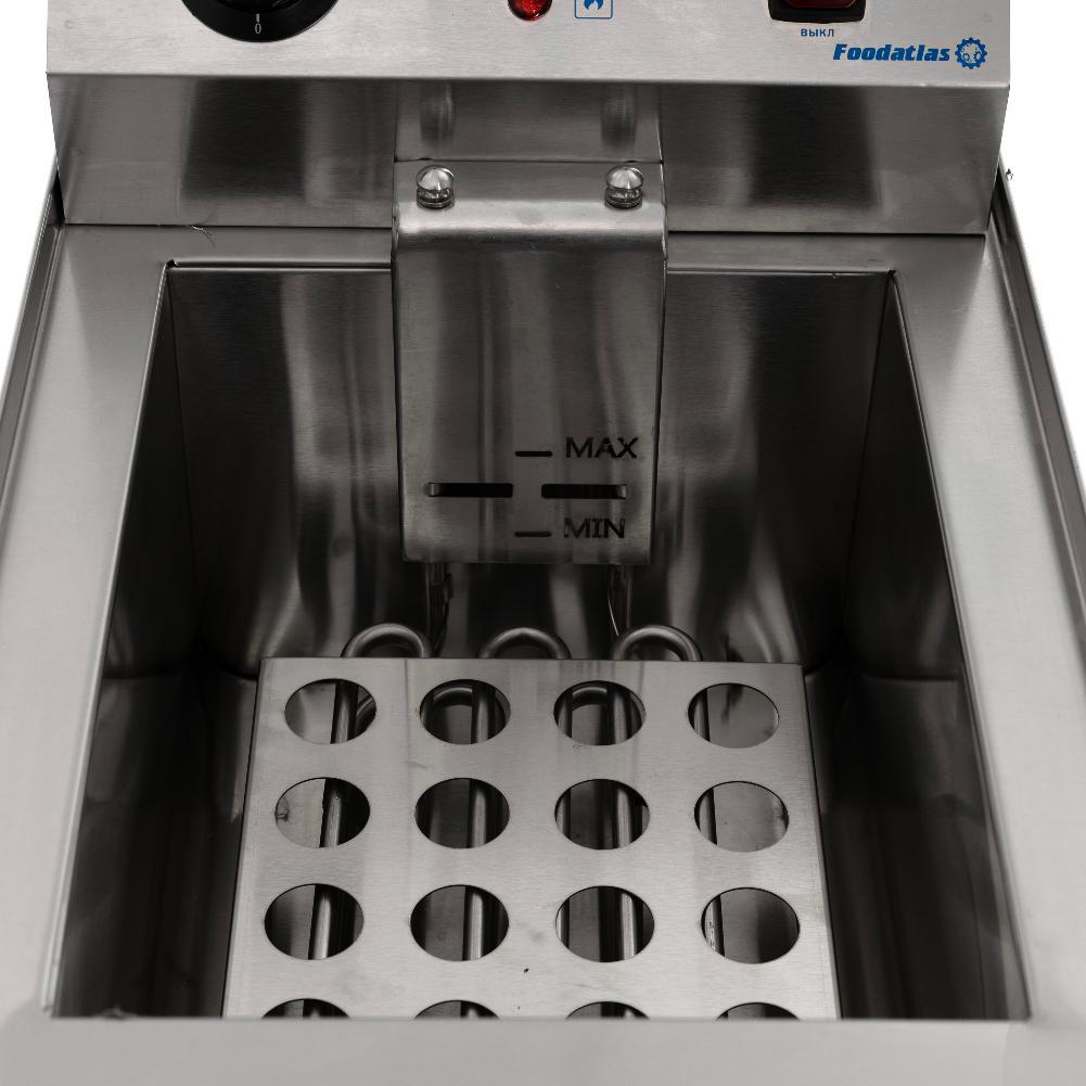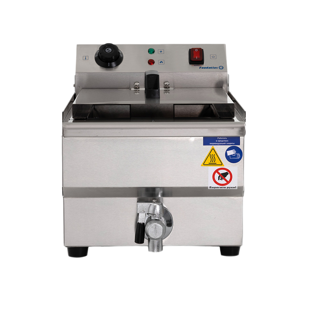 Фритюрница (13 л) DF-13L Foodatlas – это профессиональное оборудование для жарки во фритюре, идеально подходящее для кафе, ресторанов, фаст-фудов и столовых. Объем чаши 13 литров позволяет одновременно готовить большие порции, обеспечивая высокую производительность.
