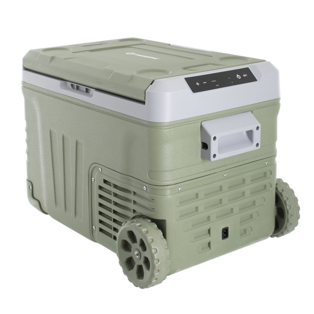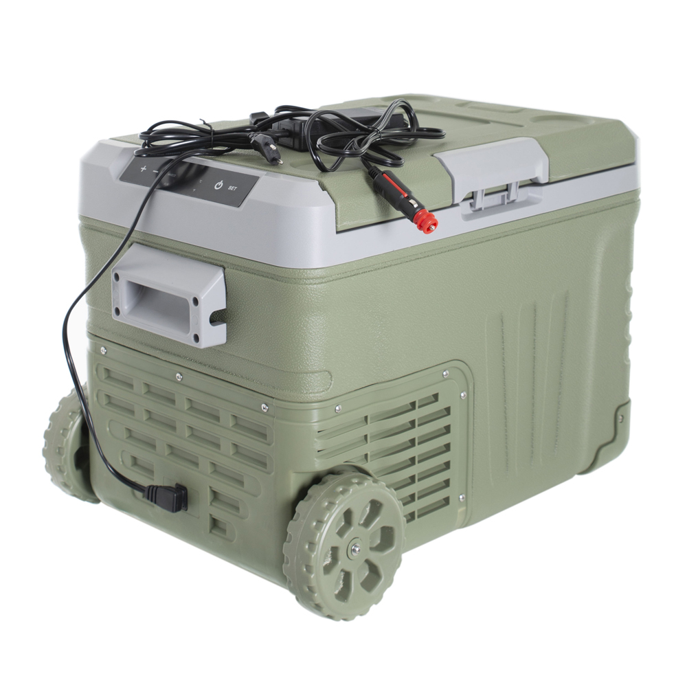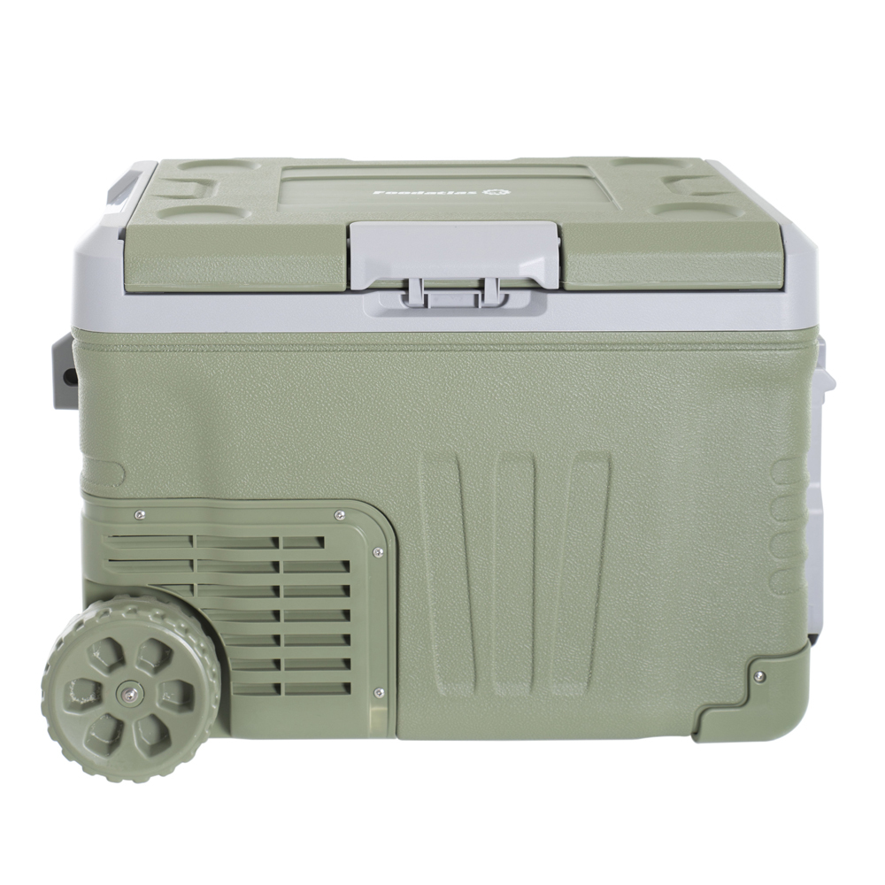 Визуально автомобильный холодильник напоминает вместительную дорожную сумку с ручками и большими колесами. Его можно переносить, а также перекатывать по ровной поверхности. Холодильник FA-35 может устанавливаться в багажник седана, хэтчбека или кроссовера, а также в просторный салон автомобиля.