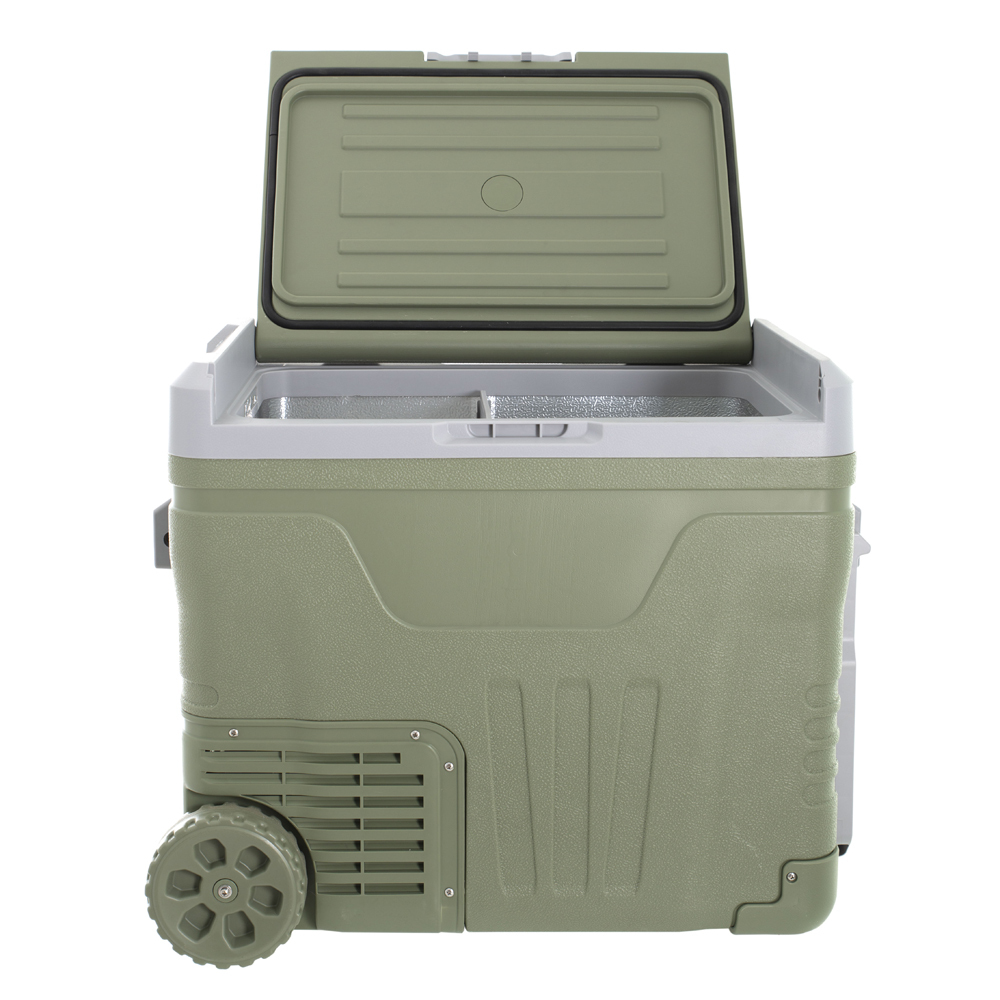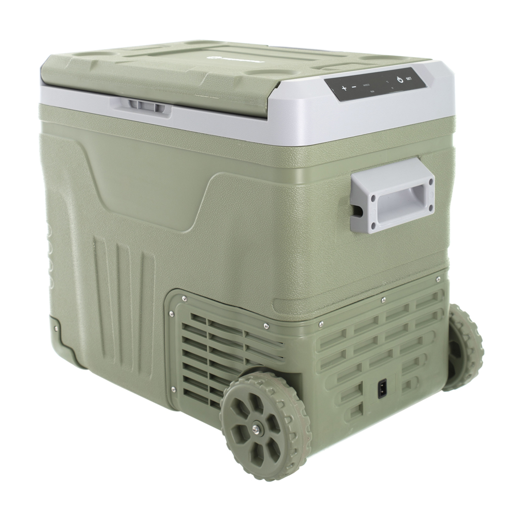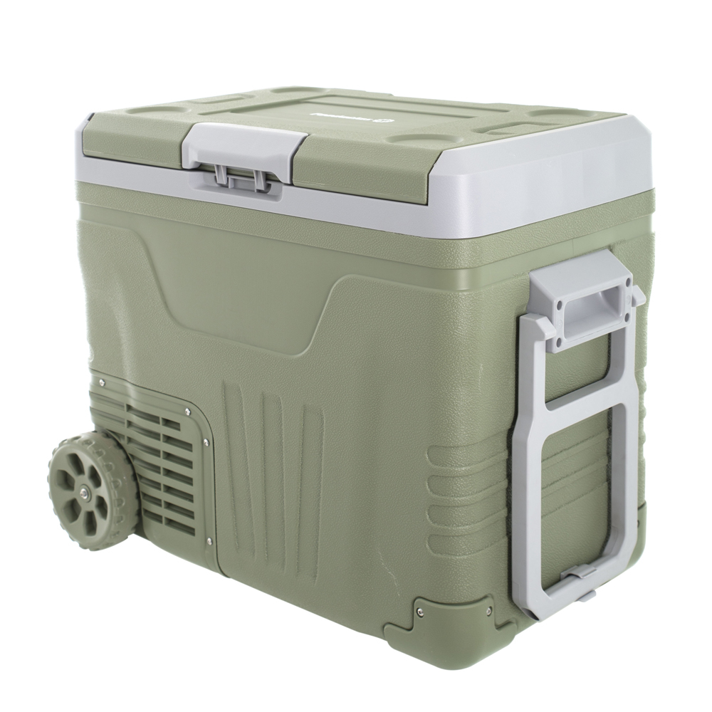 Визуально автомобильный холодильник напоминает вместительную дорожную сумку с ручками и большими колесами. Его можно переносить, а также перекатывать по ровной поверхности. Холодильник FA-55 может устанавливаться в багажник седана, хэтчбека или кроссовера, а также в просторный салон автомобиля.