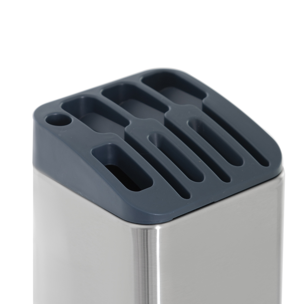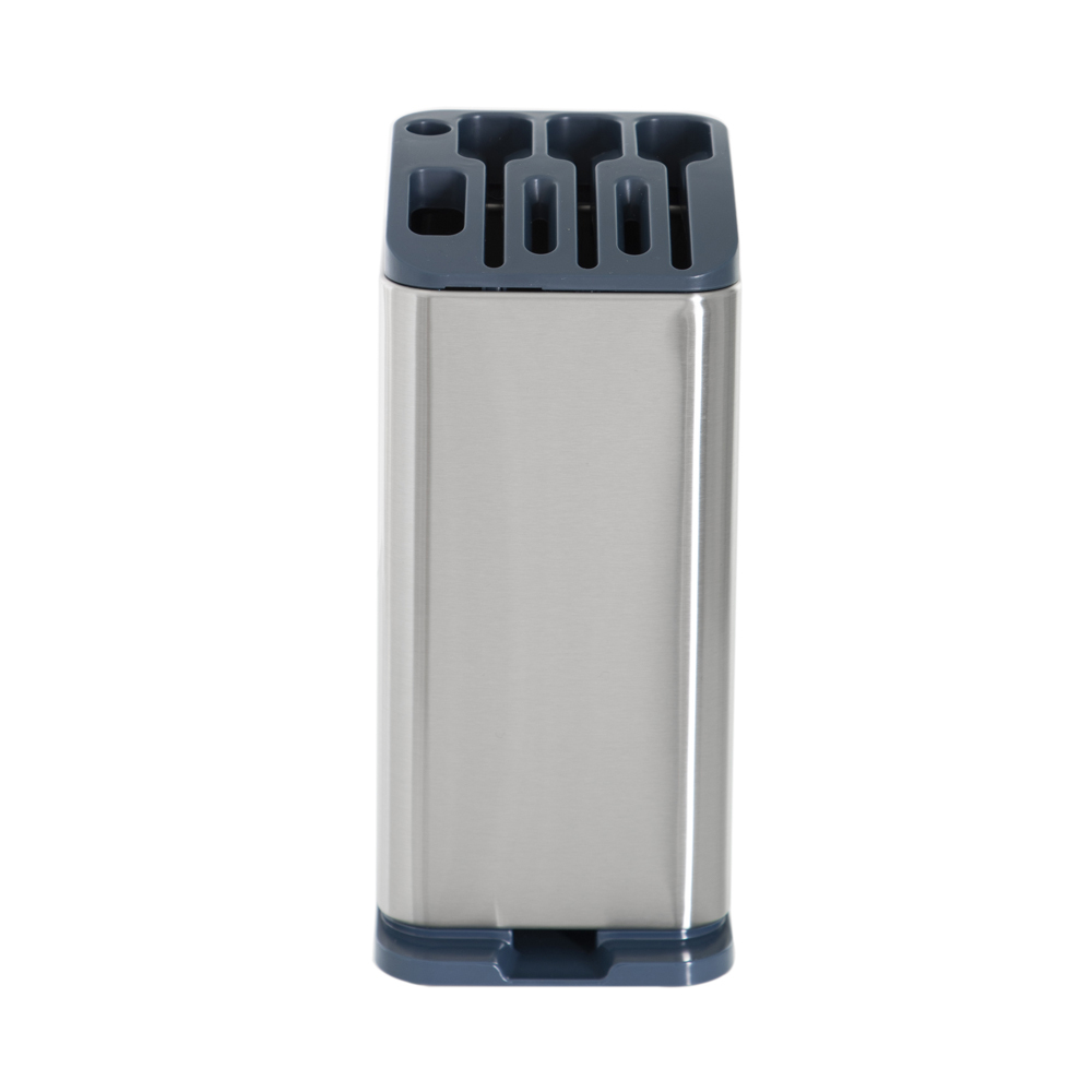 Для аккуратного хранения кухонных принадлежностей и мелочей, которые всегда должны находиться под рукой, целесообразно использовать контейнер для кухонной утвари из нержавеющей стали Foodatlas JAH-022. Устройство позволяет сэкономить пространство и распределить утварь по своим местам.