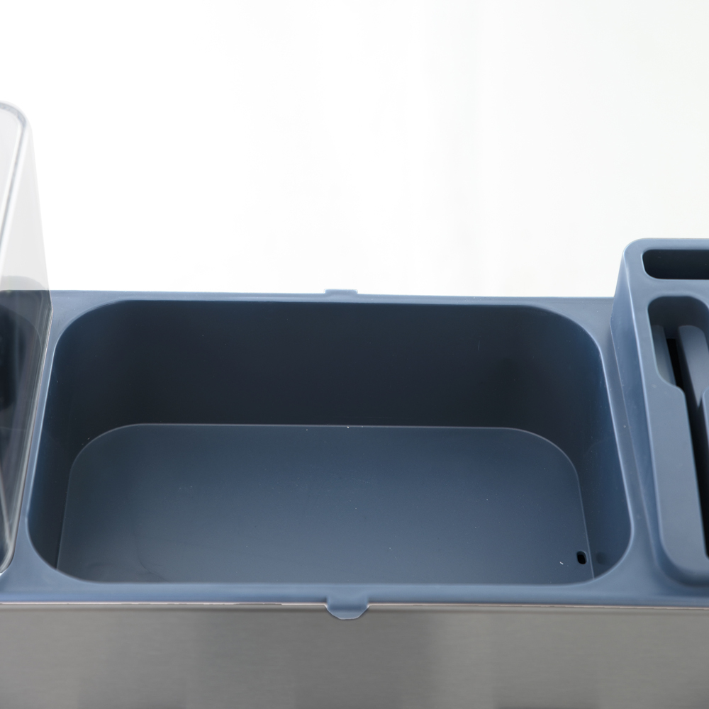 Кухонный контейнер не занимает много места. Его можно поставить на любую столешницу или в шкаф. При необходимости конструкцию можно быстро отодвинуть или перенести. С устройством небольшого веса и компактного размера удобно работать. Изделие не требует особого ухода. Стальной корпус можно протирать губкой со специальным чистящим средством. Пластиковая поверхность емкости моется под проточной водой. На поверхности не остается следов эксплуатации. Материал не деформируется, не царапается при аккуратном использовании.