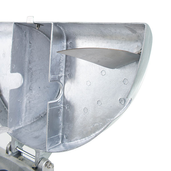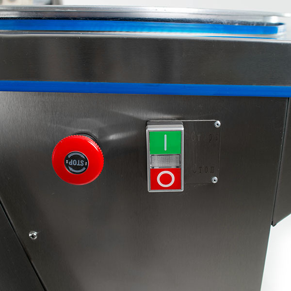 При поднятии крышки устройства срабатывает концевой выключатель, который останавливает вращение. Это защищает персонал от получения травм во время работы. Все пищевое оборудование производителя изготовлено из нержавеющей стали или хромировано, что исключает вероятность коррозии и повышает срок службы. Все используемые материалы не выделяют вредных веществ.
