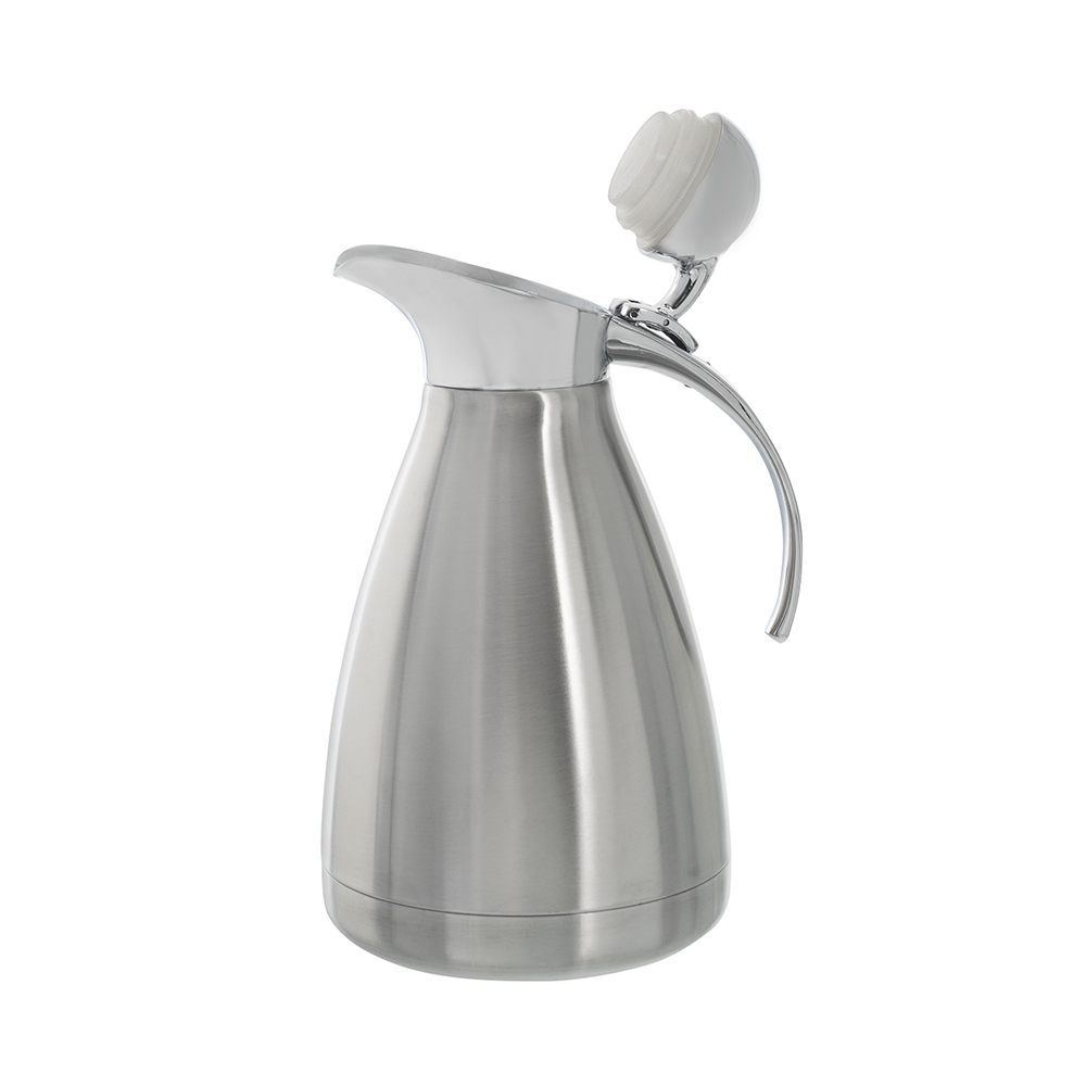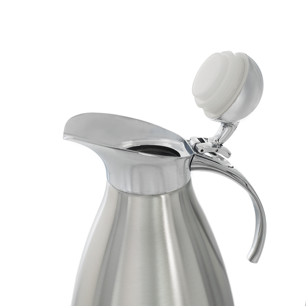 Термостойкий кувшин отличается стильным и практичным дизайном, с легко открывающейся крышкой в виде рычага и элегантным изливом. Он идеально подходит для сервировки чая, кофе и других напитков на столах.