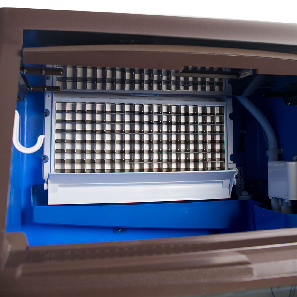 К преимуществам льдогенератора следует отнести автоматическую проверку наличия уровня воды в аппарате, «умное» электронное управление, индикаторы готовности льда, самоочищение.
