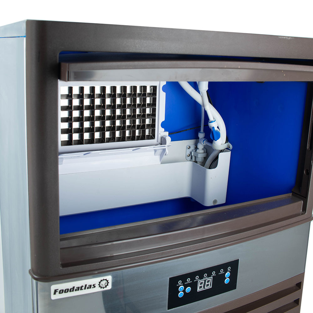 К преимуществам льдогенератора следует отнести автоматическую проверку наличия уровня воды в аппарате, «умное» электронное управление, индикаторы готовности льда, самоочищение.