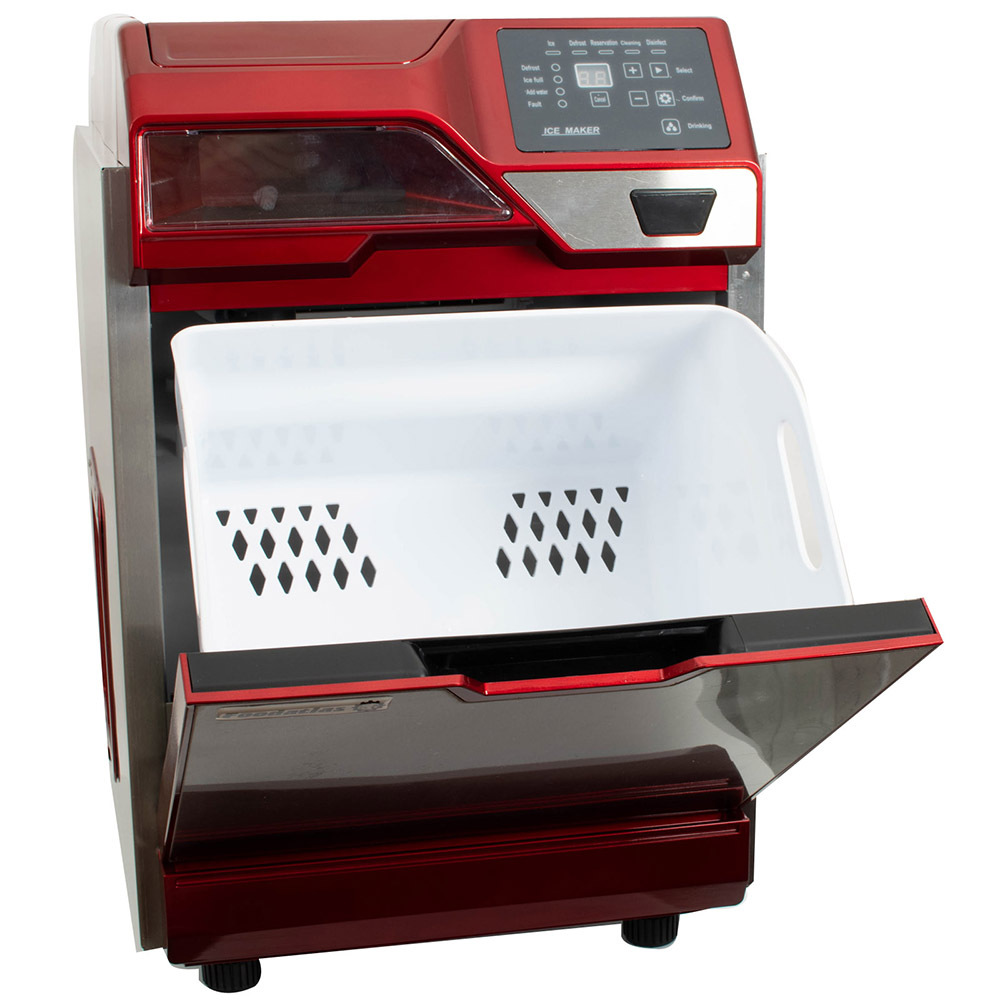 Модель, представленная в каталоге нашего интернета-магазина, вырабатывает до 25 кг пищевого льда в сутки. Благодаря своим компактным размерам, может располагаться в любом удобном месте. Стоит помнить, что аппарат не нужно устанавливать под воздействие прямых солнечных лучей и возле источника повышенных температур.