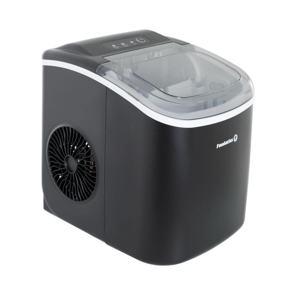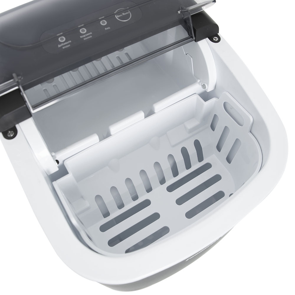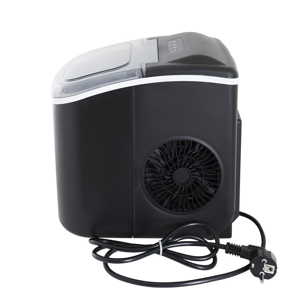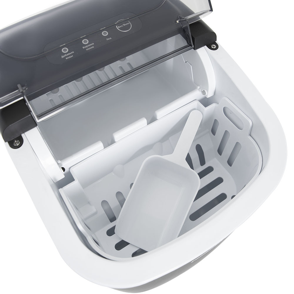 Настольный льдогенератор дает возможность вырабатывать до 12 кг льда в сутки. Компактная установка с габаритами 222*294*290 мм имеет вес всего 6,2 кг. Устройство легко транспортировать на выездные мероприятия. Пластиковый корпус не нуждается в особом уходе. Поверхность можно протирать салфеткой для поддержания опрятного вида.