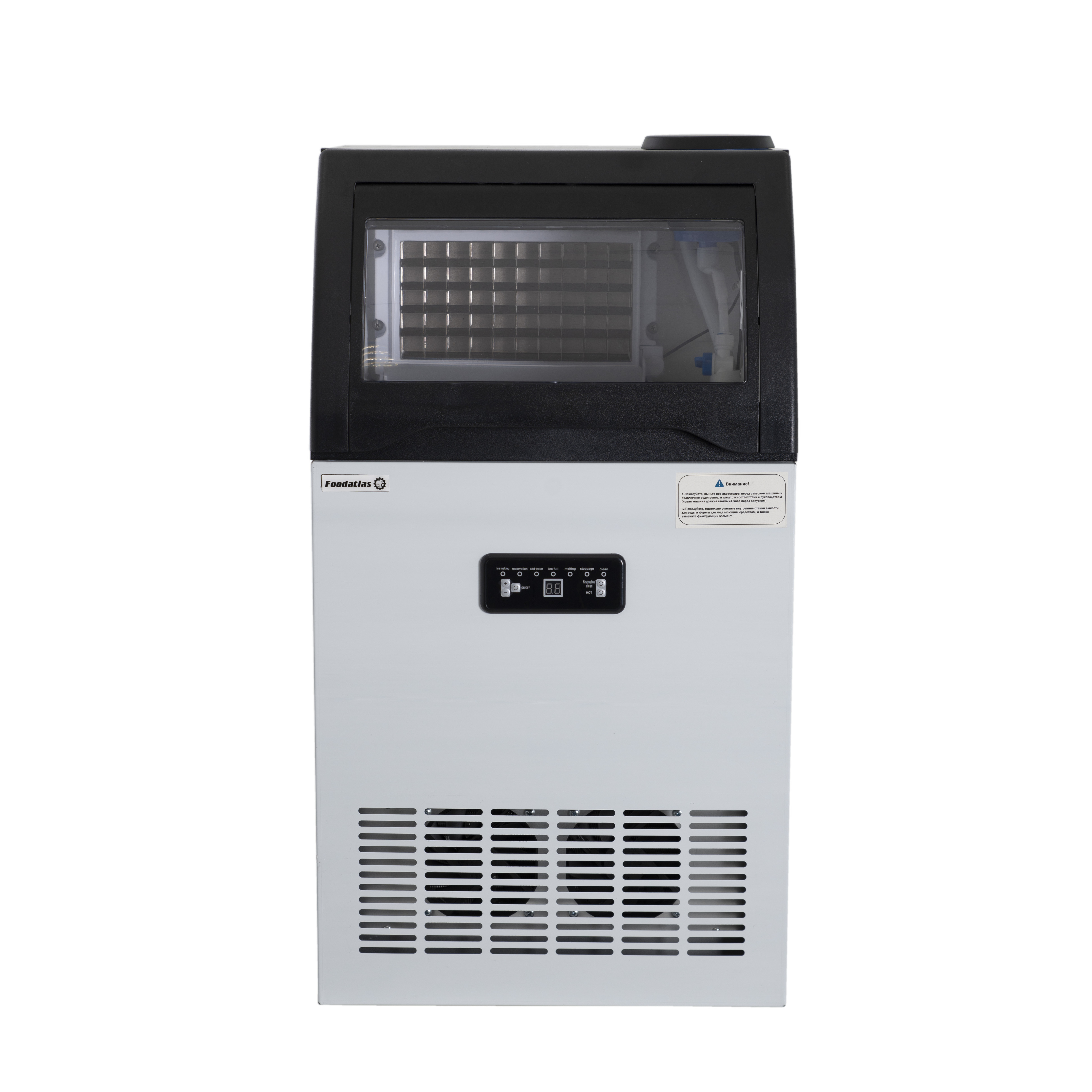 - Тип льда: кубиковый лед, который подходит для напитков, коктейлей и охлаждения продуктов