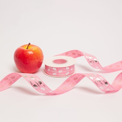 Лента репсовая 25мм х 20м, "Princess" розовый/серебро