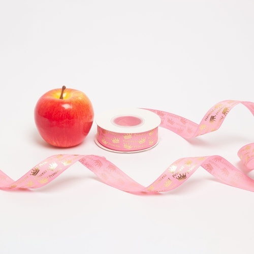 Лента репсовая 25мм х 20м, "Princess" розовый/золото