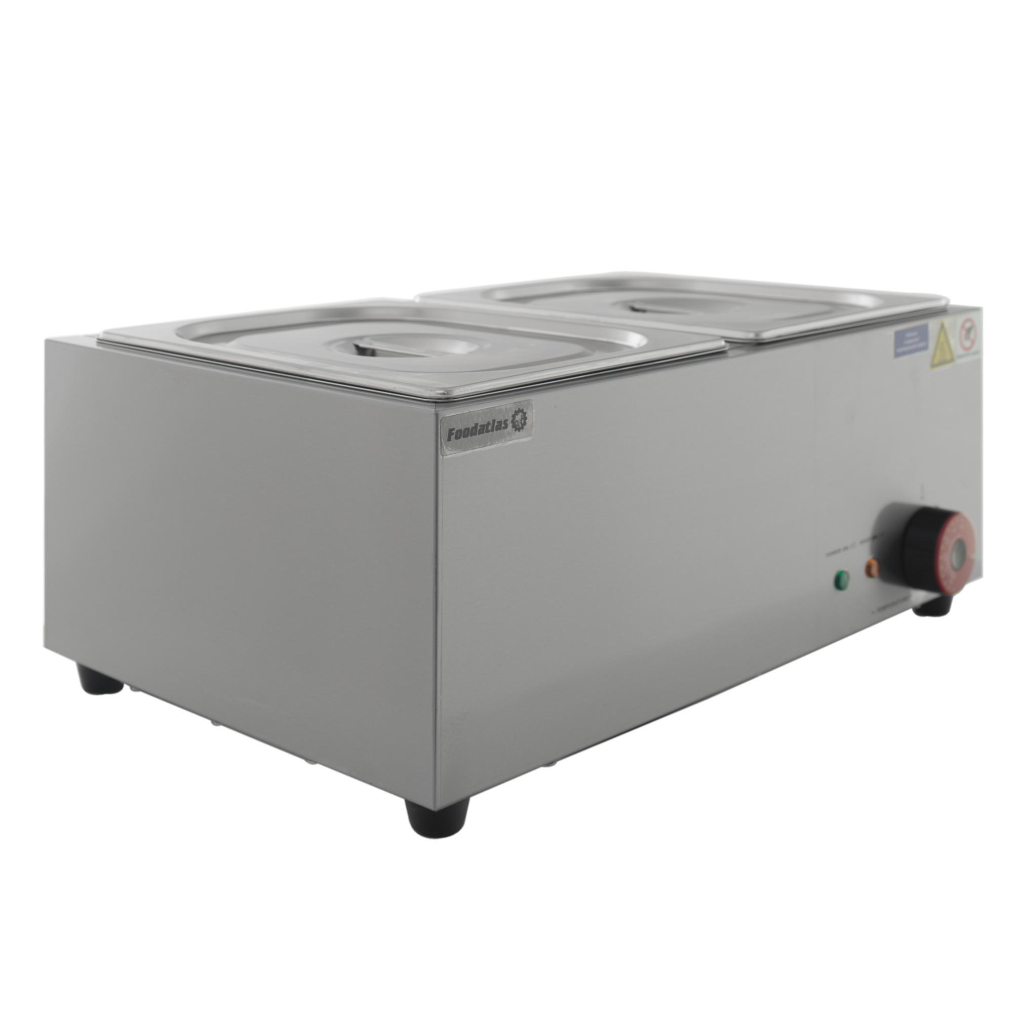 Предлагаемый вам мармит Foodatlas EH-2 имеет 2 бункера для первых и вторых блюд, соусов и прочих пищевых ингредиентов. По современным требованиям для изготовления мармитов применяется только коррозионностойкий металл. В данном случае речь идёт о нержавейке стали марки 460. Толщина металла составляет 0,8 мм, что обеспечивает исключительную механическую прочность и долговечность изделия.