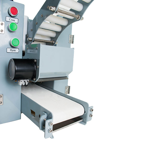 Основу конструкции аппарата составляет ряд вертикальных валков, через которые последовательно проходит тесто. В верхней части корпуса находятся регулировочные винты для изменения расстояния между валками. С их помощью можно регулировать толщину заготовок.