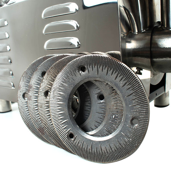 Корпус и приемный бункер мельницы жерновой HR-1500 выполнены из нержавеющей стали с применением технологий хромирования и окрашивания. Это делает ее полностью безопасной для контакта с продуктами и долговечной даже при интенсивной работе.