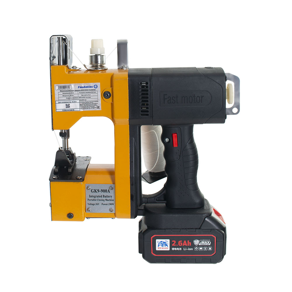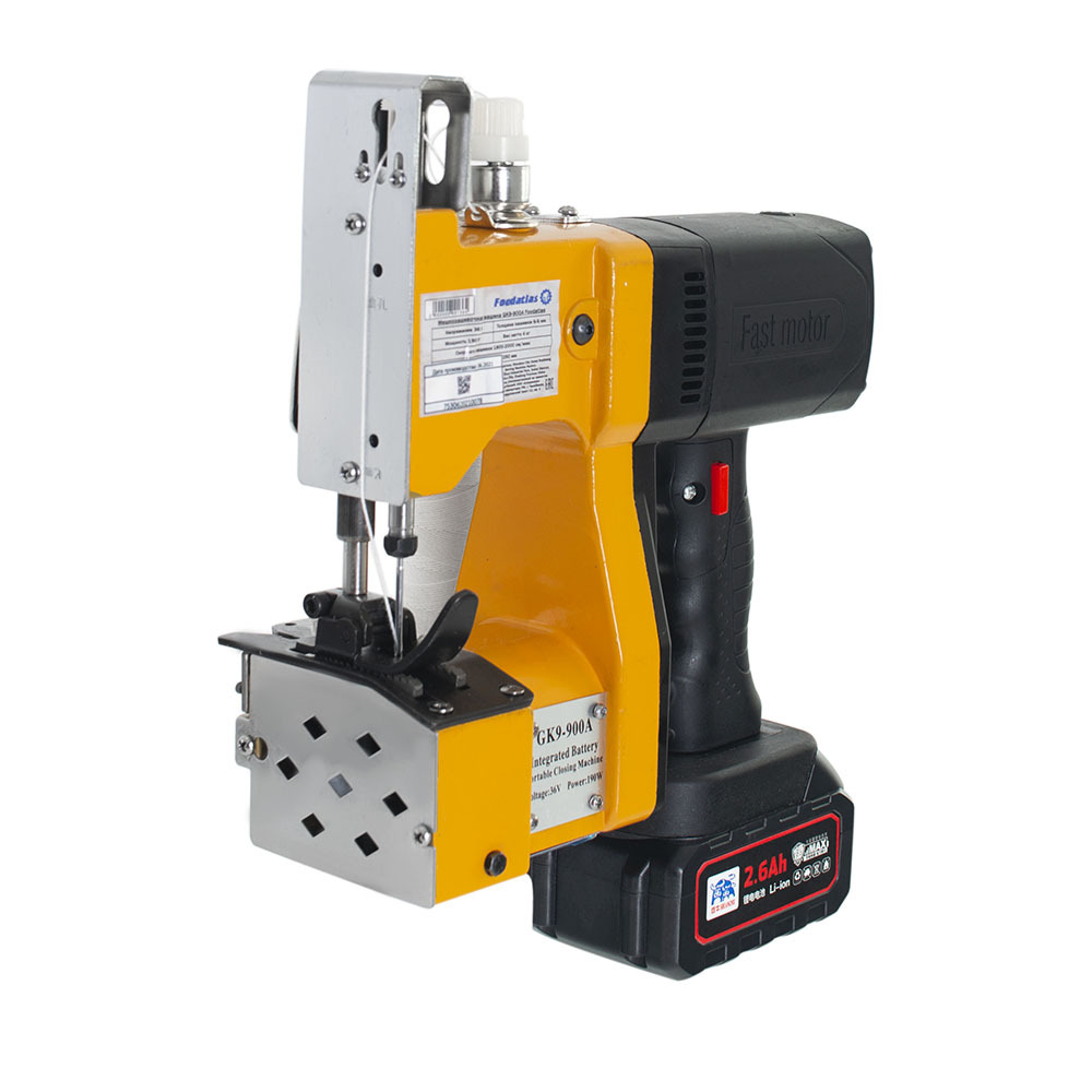 Мешкозашивочная машина GK9-900А Foodatlas предназначена для сшивания (зашивания) большинства типов мешков, пакетов, биг-бегов (мягкий контейнер) и применяется в пищевой промышленности, строительной и т.п. Модели являются портативными средствами и в большинстве случает имеют формулировку как МЗМ. Машина производит однониточный цепной стежок. Стежок легко растяжим и способен распускаться.