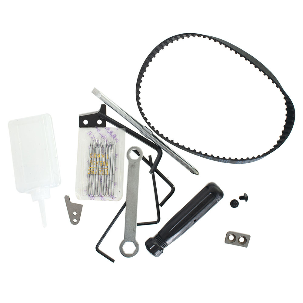 - Расширенный комплект запасных частей. В комплект входят набор сменных игл, ремни привода, масленка, ключи-шестигранные.