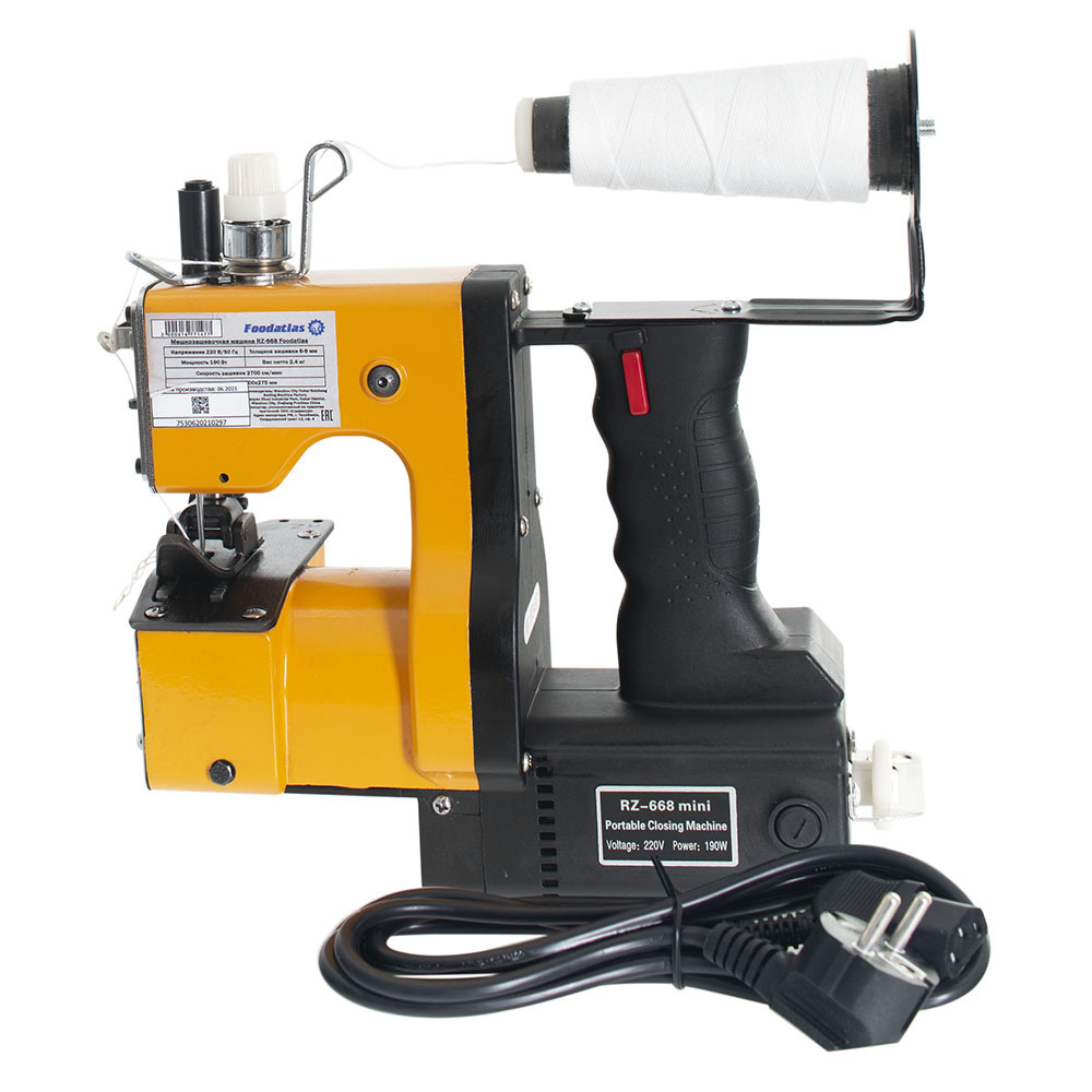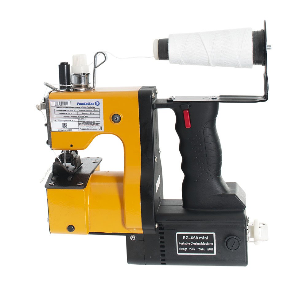 Мешкозашивочная машина Foodatlas RZ-668 предназначена для сшивания (зашивания) большинства типов мешков, пакетов, биг-бегов (мягкий контейнер) и применяется в пищевой промышленности, строительной и т.п. Модели являются портативными средствами и в большинстве случает имеют формулировку как МЗМ. Машина производит однониточный цепной стежок. Стежок легко растяжим и способен распускаться.
