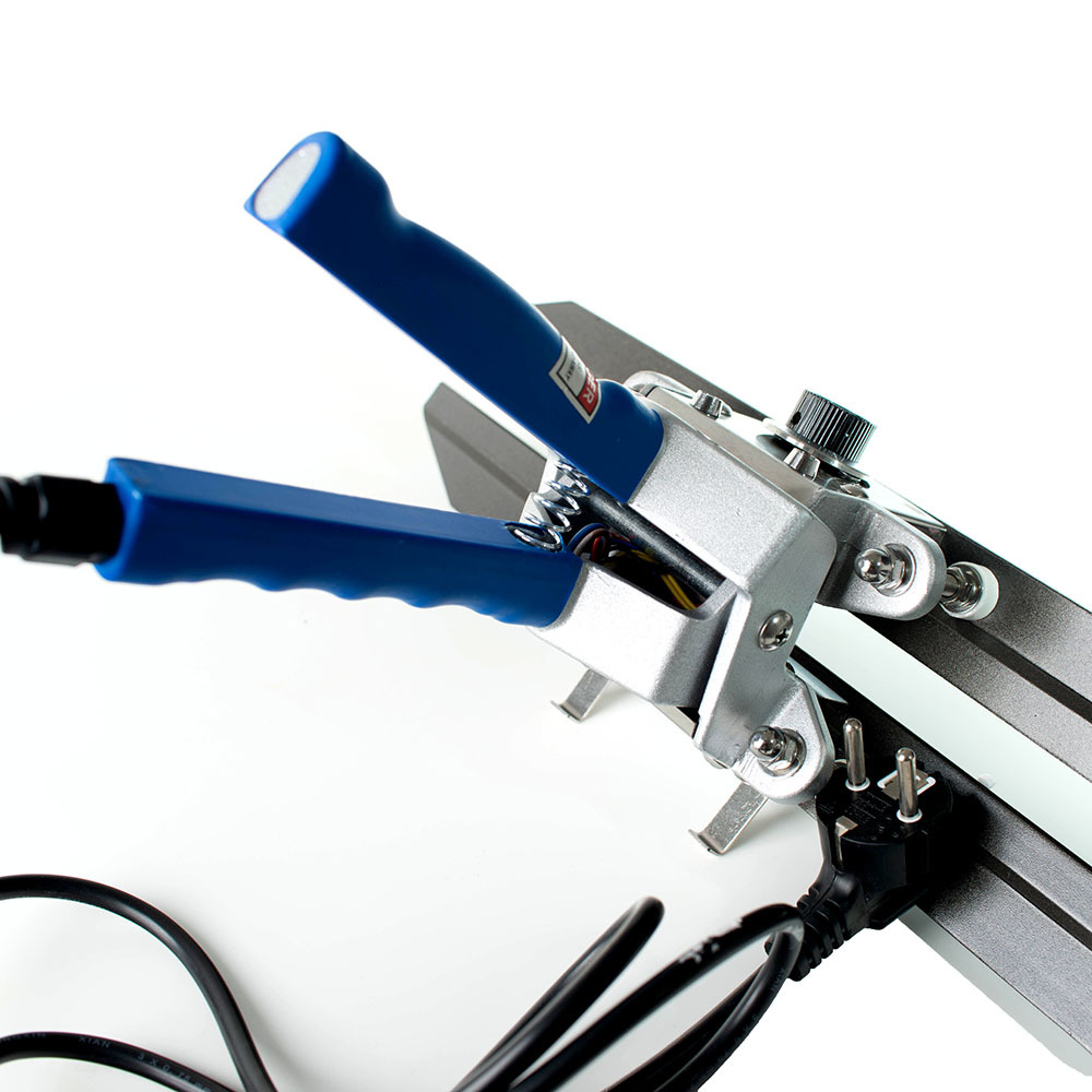 Конструкция действует по принципу щипцов. Достаточно поместить пакуемый материал в пакет и плотно прижать запайщик по линии шва на несколько секунд. Чем дольше время воздействия, тем прочнее и толще получается шов.