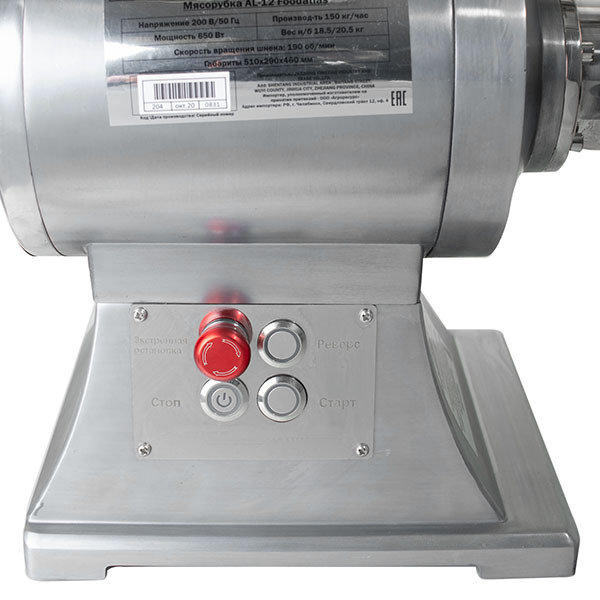 Скорость вращения ножа составляет 193-225 оборотов в минуту. Это обеспечивает высокую производительность, которая достигает 150 кг/ч. Двигатель мощностью 650 Вт обеспечивает стабильную работу профессиональной мясорубки и справляется с различными мясопродуктами.