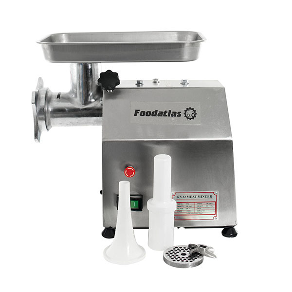 Мясорубка Foodatlas KY-22A предназначена для измельчения кускового бескостного (жилованного) мяса и рыбы. Измельченный мясной компонент используется для дальнейшего создания котлетных форм, наполнение колбас и т.д.
