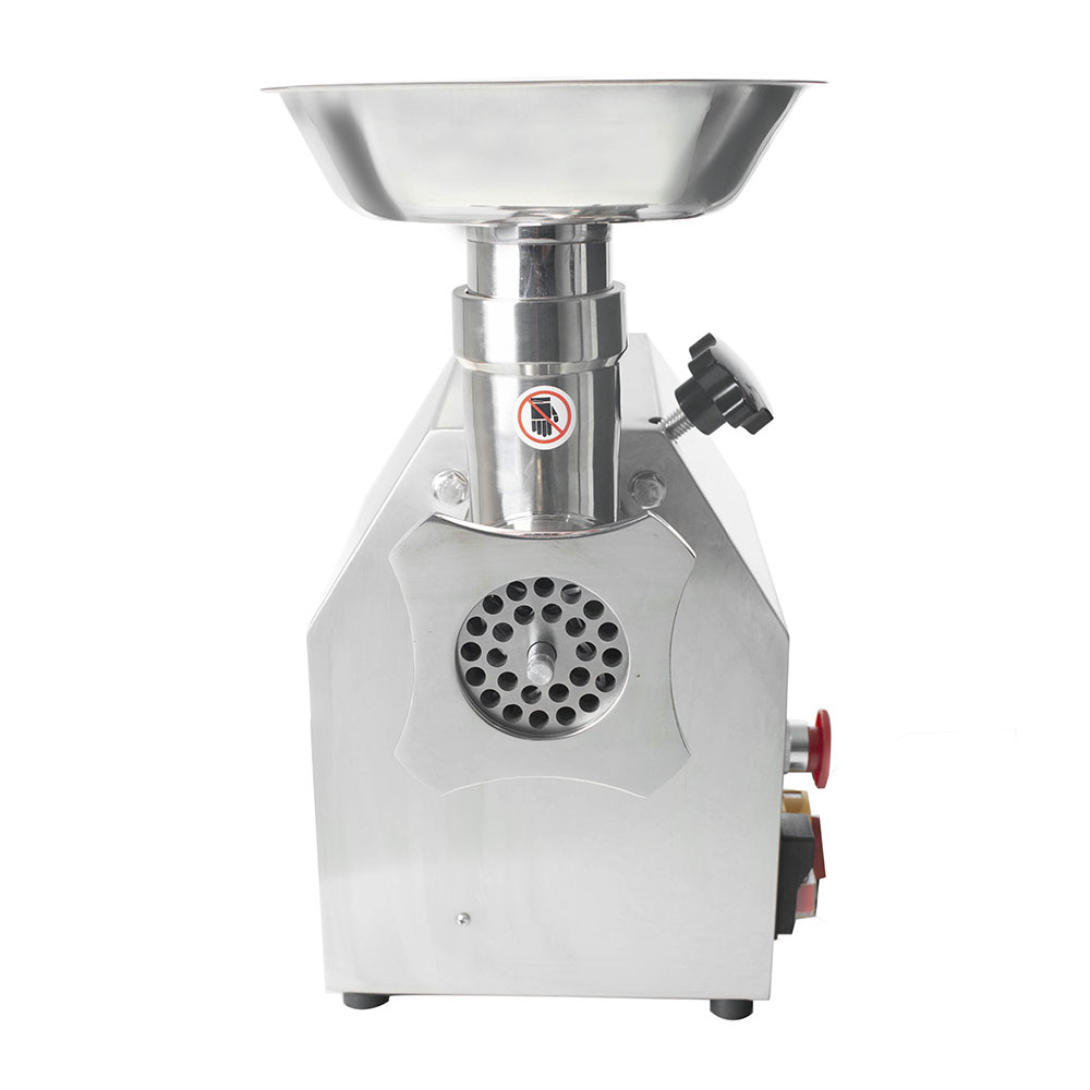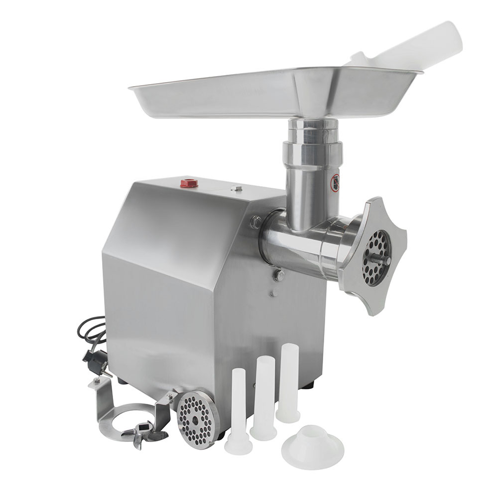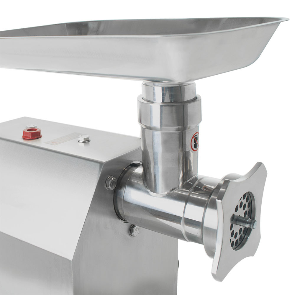 Прибор оснащен мощным двигателем, способным выдержать ежедневные нагрузки на предприятиях общественного питания с большой проходимостью. При сравнительно небольших габаритах: 385x240x415 (Д х Ш х В, мм), мясорубка может обработать до 150 кг продукта в час.
