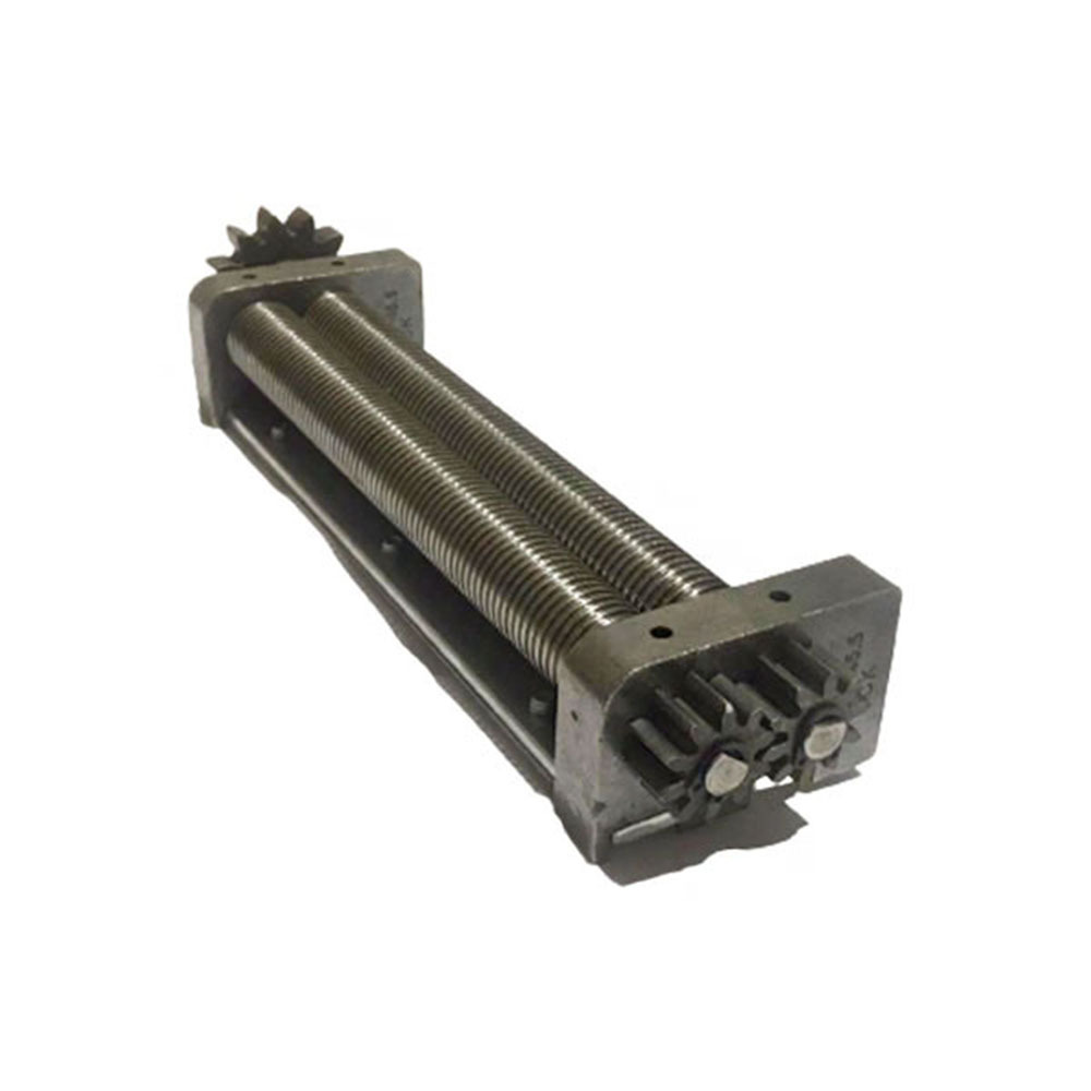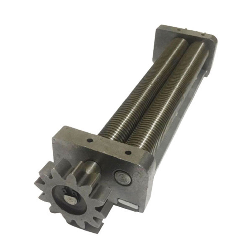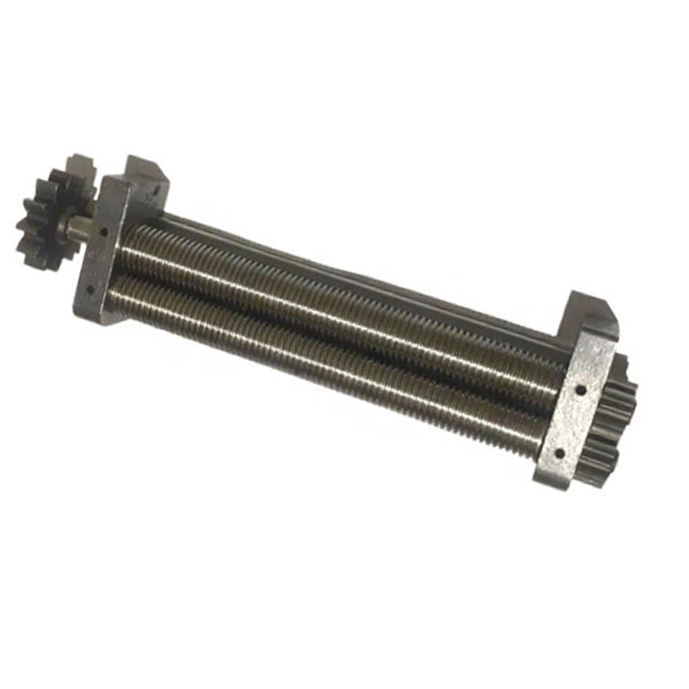 На одном из концов каждого из валов есть шестерни. Так же есть одна шестерня привода передающая вращение от привода на валы. Так же на валах есть бурты.