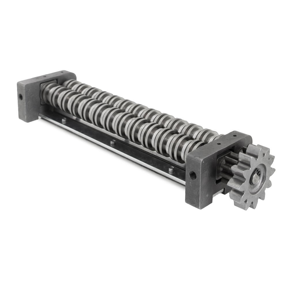 На одном из концов каждого из валов есть шестерни. Так же есть одна шестерня привода передающая вращение от привода на валы. Так же на валах есть бурты.