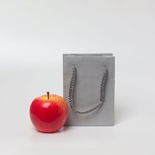 Маленький крафт пакет, топлайнер серебро 135;гр.. ширина 11см. высота 15см. дно 6см. ручки шнур п/п с клипсой.