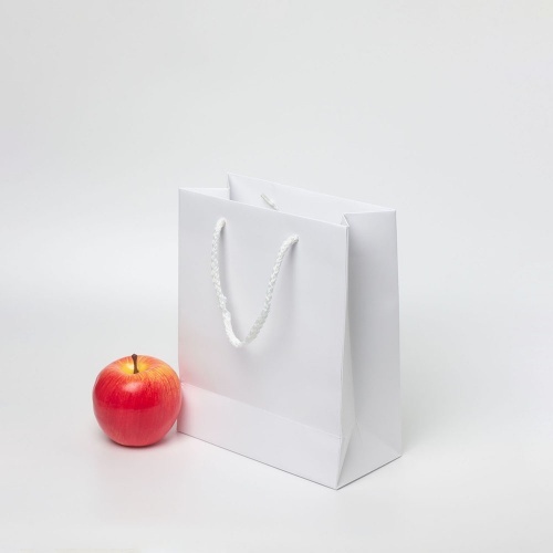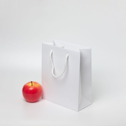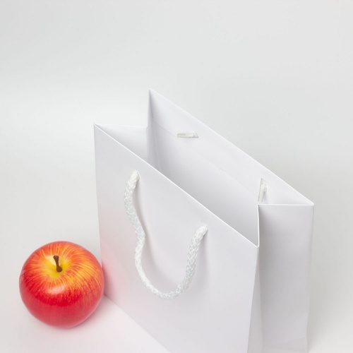 Мелованная бумага 150 гр., цвет белый, матовая ламинация, ручка - шнурок