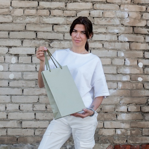 Пакет 23x36x10, светло-оливковый, лента, имитлин VIP
