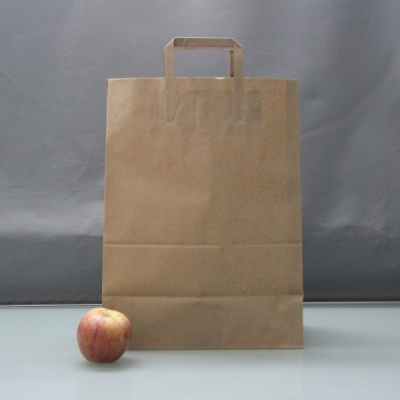 Пакет 32x43x20, коричневый крафт,плоская бумажная ручка