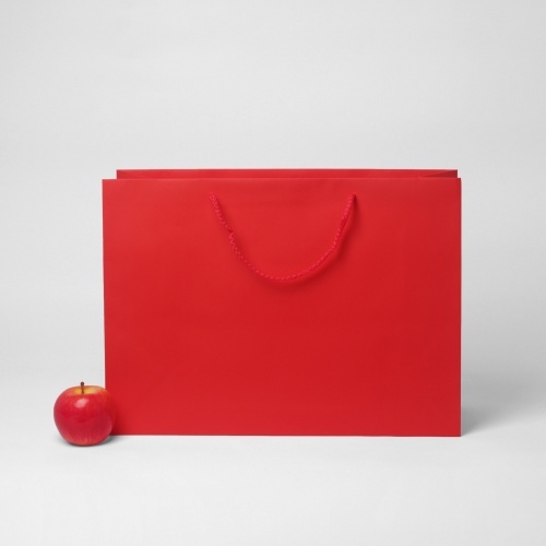 Пакет. Ширина 47. Высота 34. Бок 16. Красный, меловка 250 гр., матовая ламинация, ручка п/п.