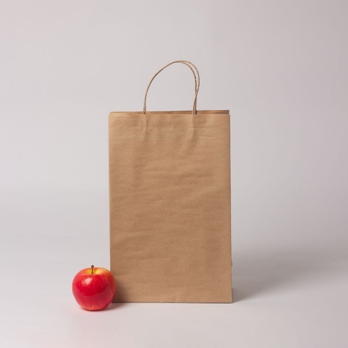 Пакет бумажный 23x36x10 усиленный, коричневый, крафт, ручка крученая
