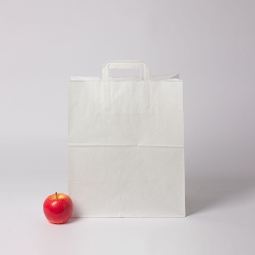 Пакет бумажный 32х37х20, тонкий крафт белый, плоские ручки