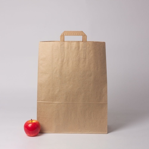 Пакет бумажный 35x45x15, коричневый, крафт, ручка плоская бумажная