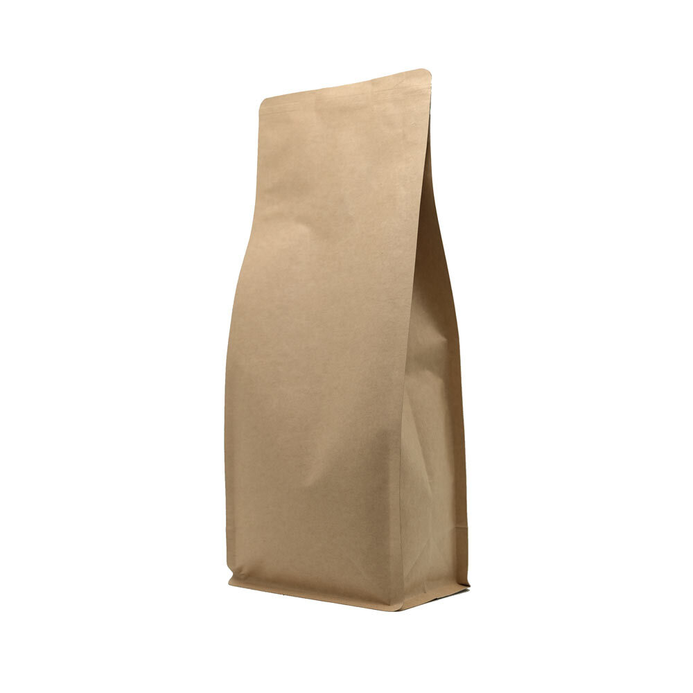 Квадропак для 1000г, коричневый крафт, 160 мкм, мет, 140X345X95мм, зип, есть клапан, лента отрыва