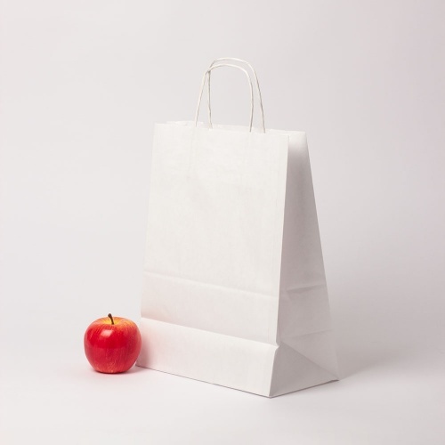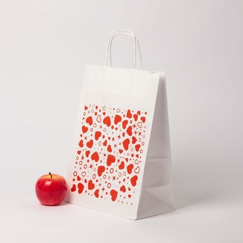 Пакеты бумажные, 26x35x14, "Сердечки и звездочки", белый