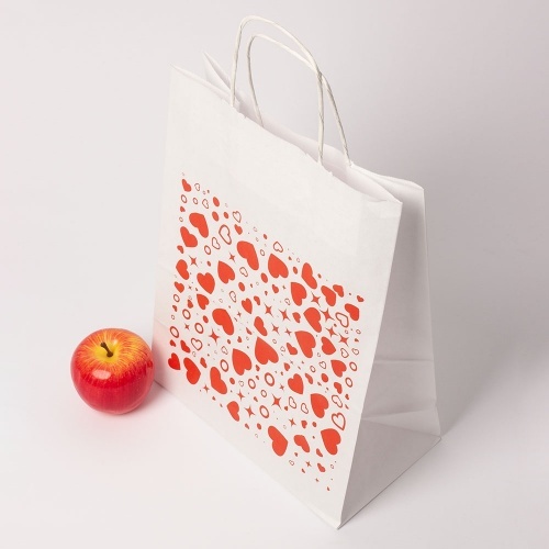 Пакеты бумажные, 26x35x14, "Сердечки и звездочки", белый – купить за 30 ₽ | УНИВЕРПАК - Брендированная упаковка - Упаковка для кофе - Квадропак - Пакеты - Картон - Скотч