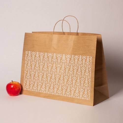 Пакеты бумажные, 47x34x16, "Елочки", коричневый
