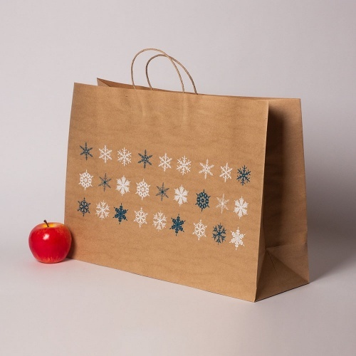 Пакеты бумажные, 47x34x16, "Снежинки", коричневый – купить за 37.50 ₽ | УНИВЕРПАК - Брендированная упаковка - Упаковка для кофе - Квадропак - Пакеты - Картон - Скотч