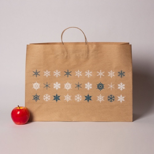 Пакеты бумажные, 47x34x16, "Снежинки", коричневый
