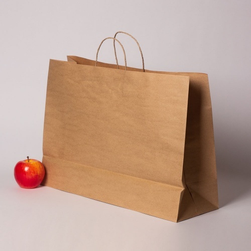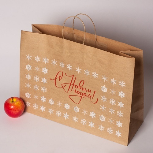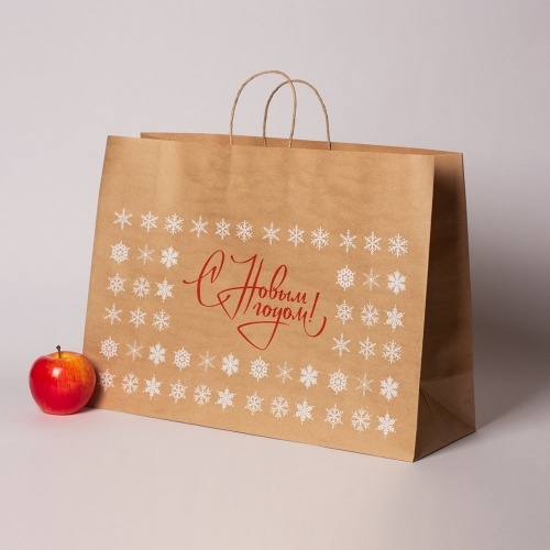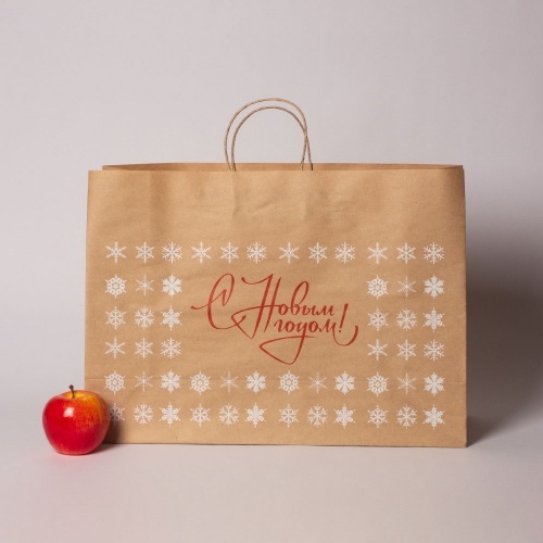 Пакеты бумажные, 47x34x16, "Снежинки С новым годом" коричневый