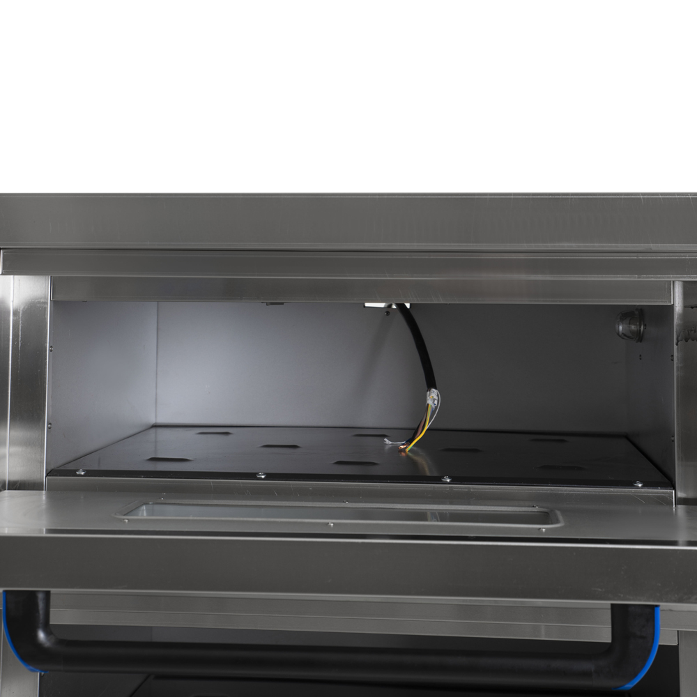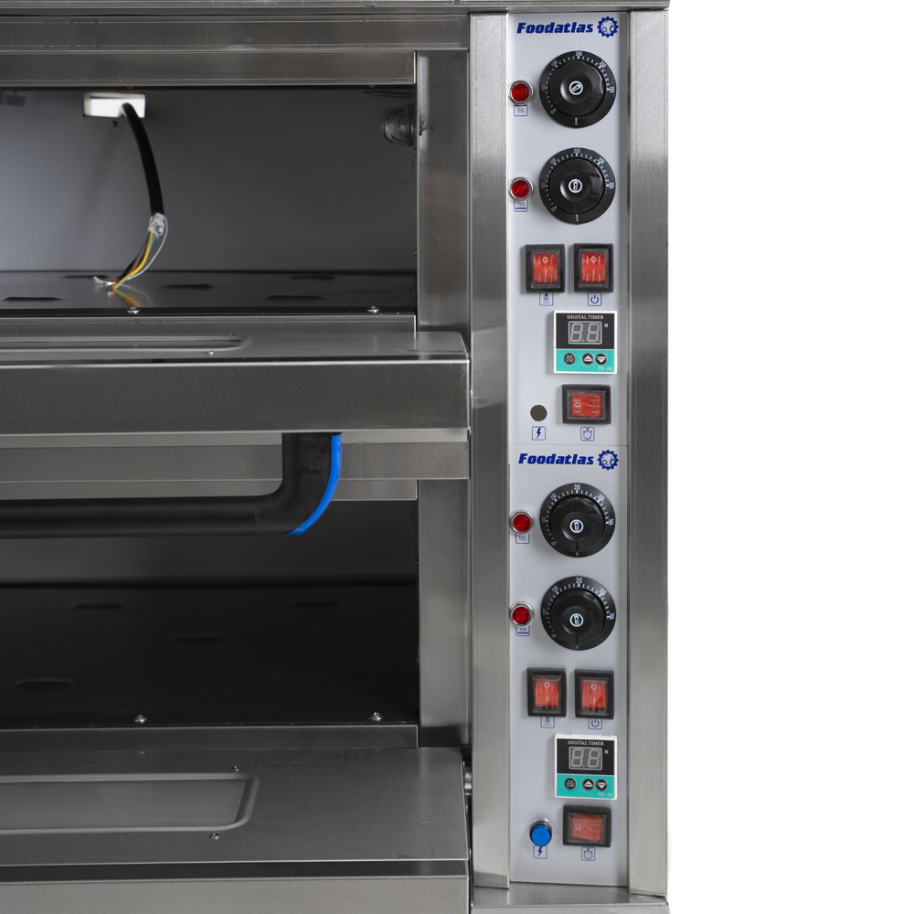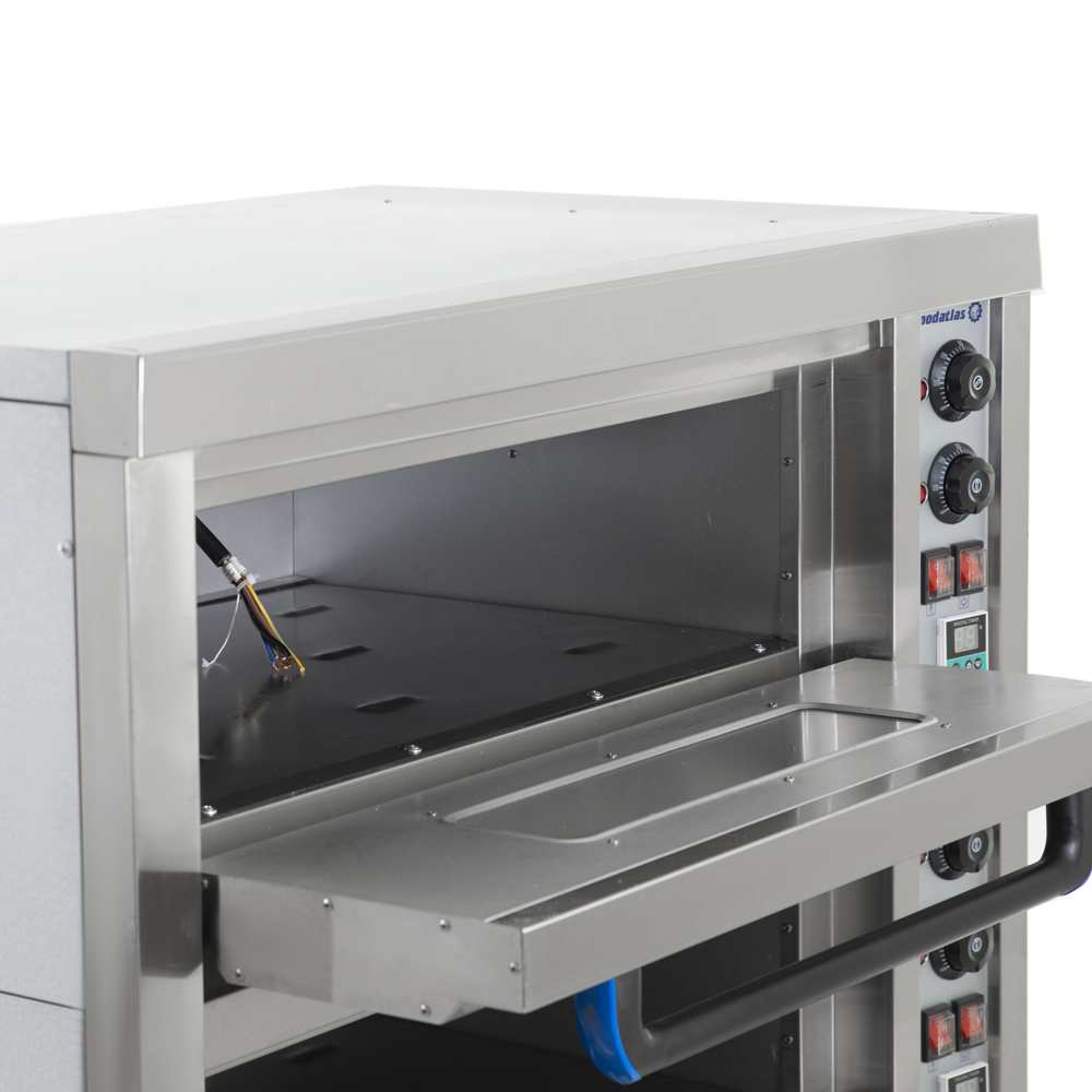 - высокие (180мм) пекарные камеры, позволяющие выпекать формовой хлеб, исключая подгорание верхней корки от контакта с верхней частью камеры (в отличии от пекарских шкафов)