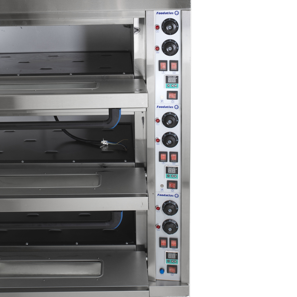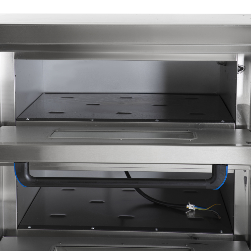 - высокие (180мм) пекарные камеры, позволяющие выпекать формовой хлеб, исключая подгорание верхней корки от контакта с верхней частью камеры (в отличии от пекарских шкафов)