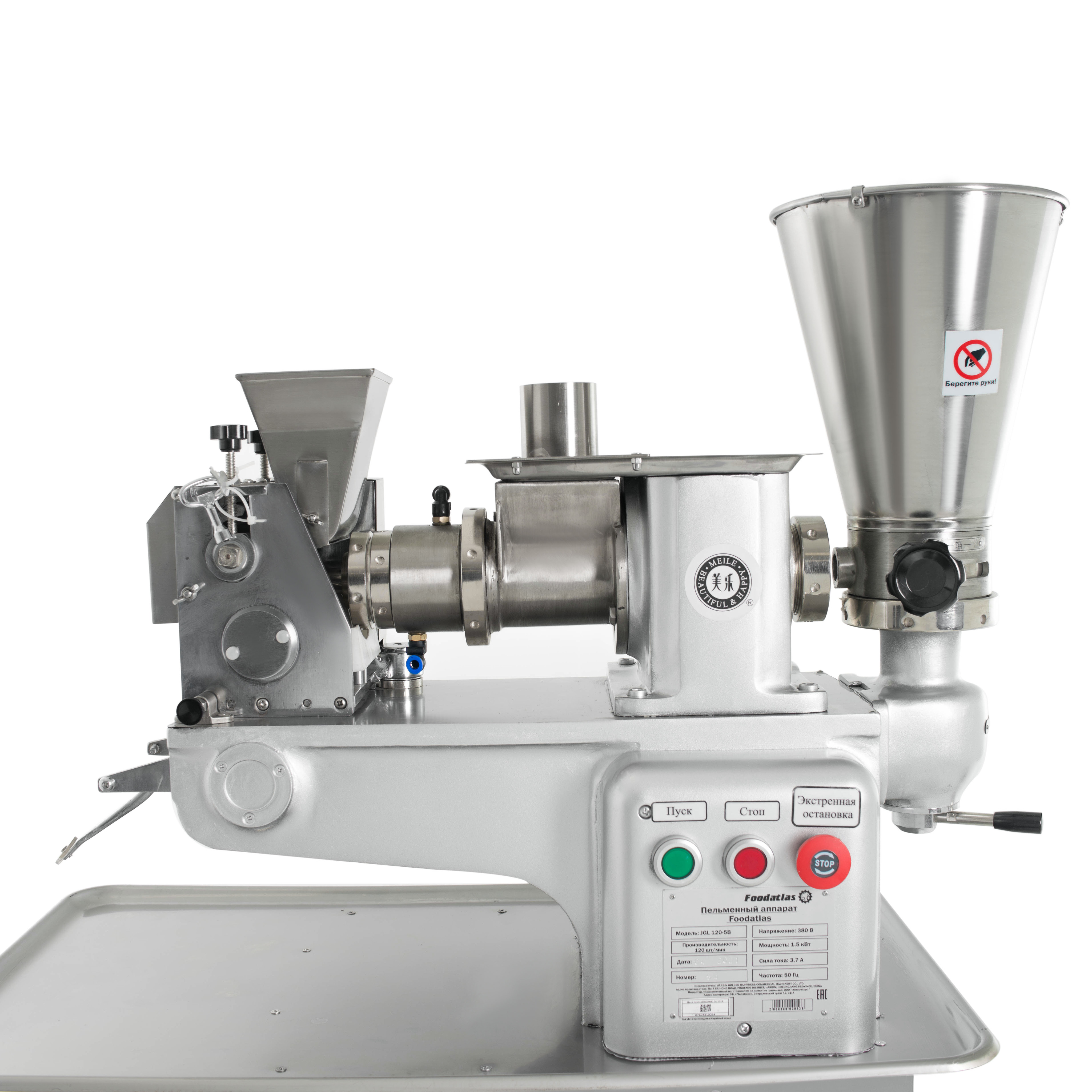 Пельменный аппарат JGL 120-5B (AR) Foodatlas предназначен для производства всевозможных полуфабрикатов, таких как: пельмени, равиоли, клёцки, мини-пельмени, вареники, пирожки. Оборудование специализировано для использования в коммерческих целях на предприятиях общественного питания, ресторанах, супермаркетах, производствах мясных и мучных полуфабрикатов. Разработано с учётом современных требований и нацелено на безопасное, легкое применение. Пельменный аппарат JGL производит изделия из теста, начиненные различной начинкой и имеющие разнообразную видовую форму и габаритные размеры. Форма продукта зависит от используемой вид-матрицы и сменной формующей головки.