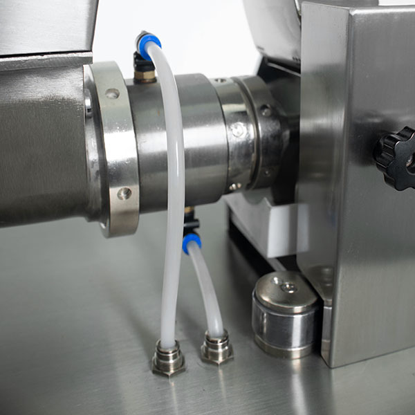 - Корпус тестоузла выполнен с дополнительным водяным охлаждением. Данный узел может сильно нагреваться за счет трения крутого теста даже при формировании средней толщины "тестовой трубки". Необходимо подключение к водоснабжению.
