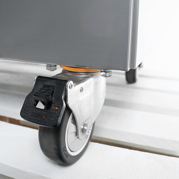 - Тип - напольное исполнение. Опорные колеса обладают системой стопорных механизмов для блокировки станины, с помощью которых упрощается процесс эксплуатации.