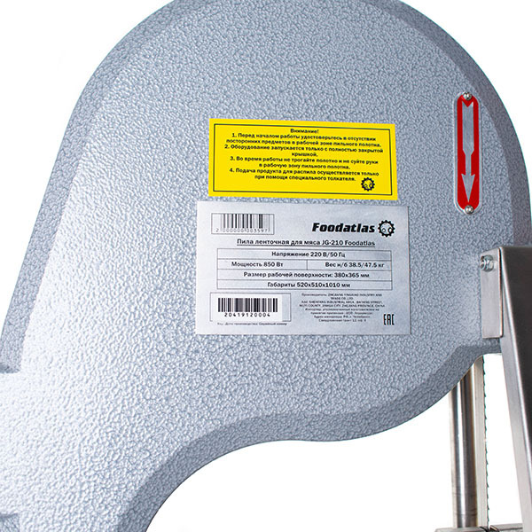 Пила ленточная для мяса Foodatlas JG-210 – предназначена для разделки, распиливания и нарезки мяса и костей, птицы и рыбы, находящиеся в охлажденном или замороженной состоянии.